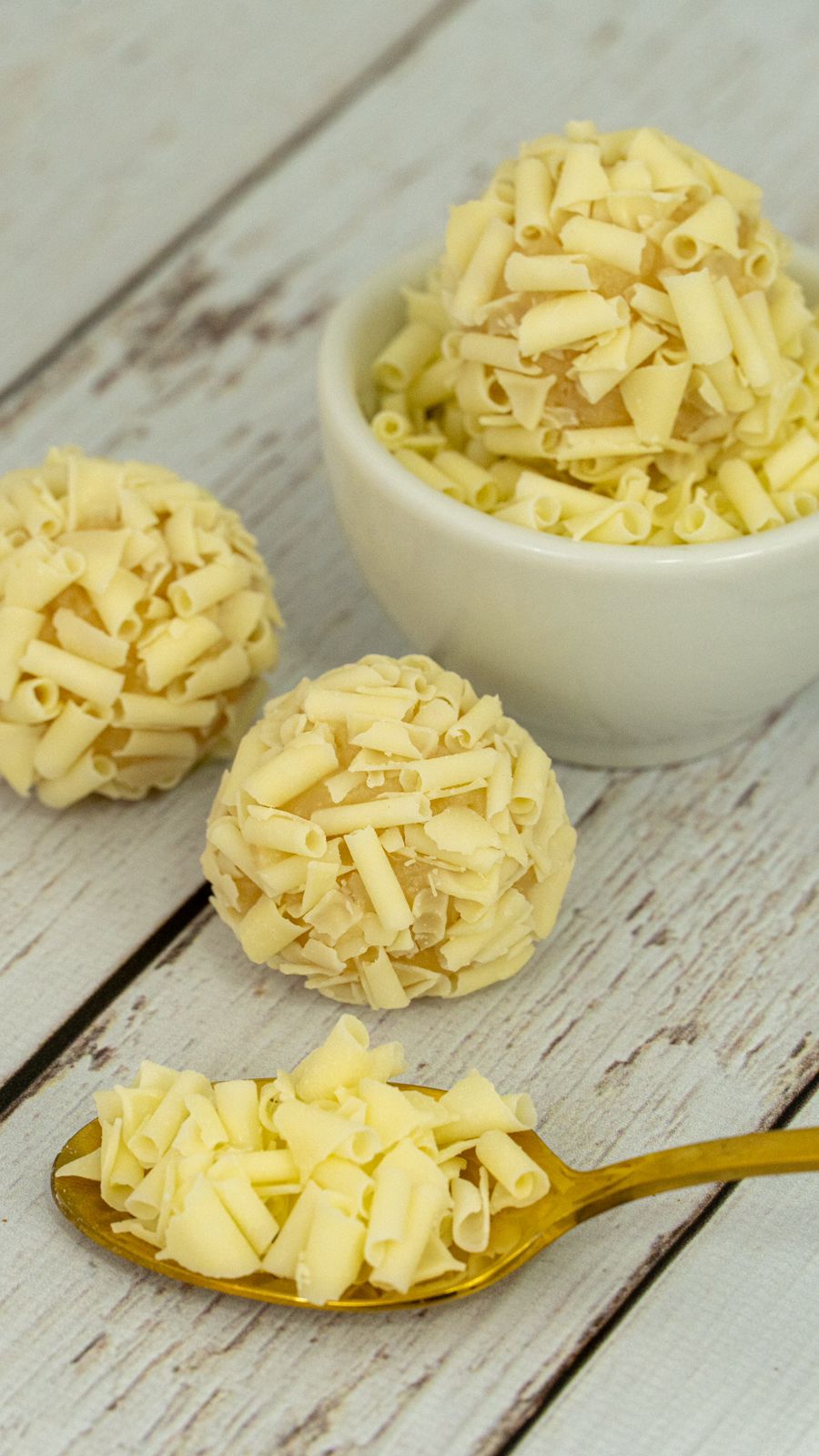Branquinho com raspas de chococolate branco belga Callebaut (mín 24 uni)
